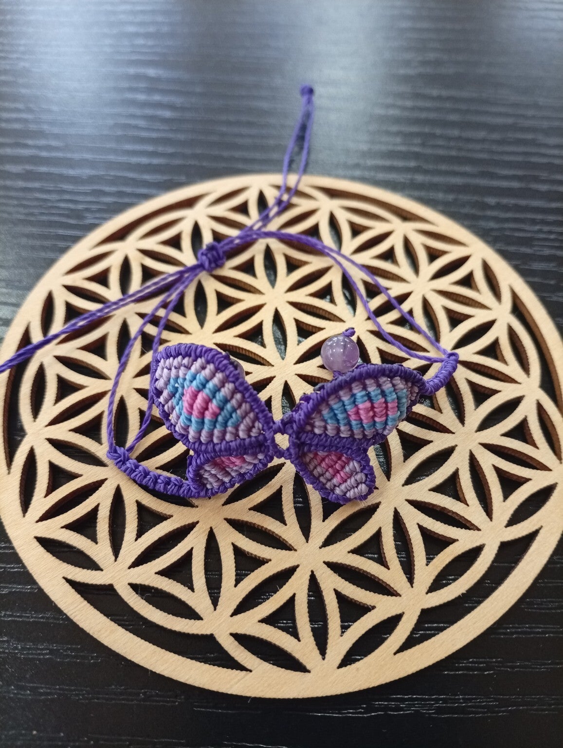 🦋 Bracelet Papillon en micro-macramé & Améthyste 🦋